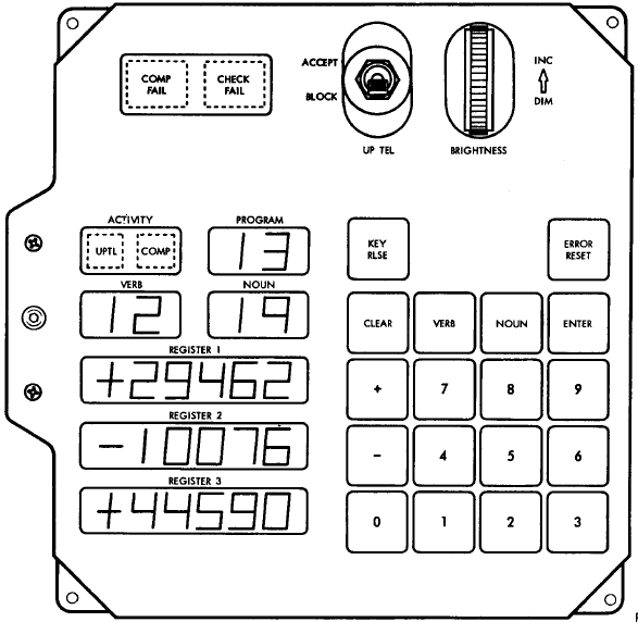 DSKY. On the right is a photo of a main control-panel DSKY.![]() |
