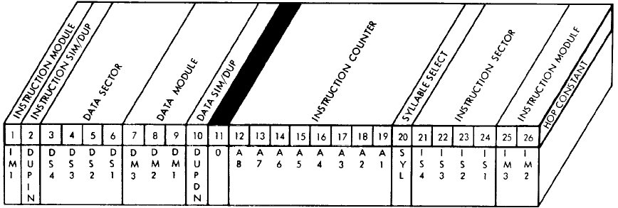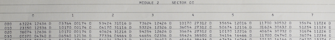 yaASM.py [OCTALS.tsv] <INPUT.lvdc >OUTPUT.lstThe assembler simply takes an input file of LVDC source code (INPUT.lvdc), and produces as output a human-readable assembly listing (OUTPUT.lst). Additionally, it produces a file containing an octal listing of the assembled code, which is always called yaASM.tsv. This file is produced whether or not there were fatal errors in the assembly process, so don't take the existence of the yaASM.tsv file as an indication that assembly succeeded. yaASM.tsv is what would be used to create an octal rope, if you had an LVDC, or which would be used as input to a software-based emulator for the LVDC CPU. The format of the file will be discussed in a moment.
